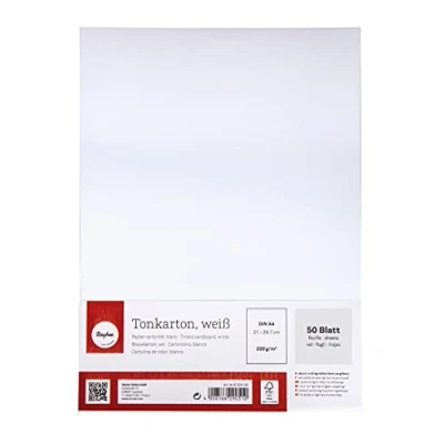 Paquete con 50 cartulinas blancas, en tamaño folio DIN A4 (de 21 x 29,7 cm) y gruesas (220g/m²),para que hagas con ellas manualidades, dibujos, les des forma, las decores y cuelgues como adornos Las cartulinas son de un color blanco nieve por ambos lados que estará resplandeciente mucho tiempo. Como no tienen ácido, el blanco no amarillea y tus manualidades estarán igual que el primer día Estas láminas blancas te sirven para crear, decorar y cuidar del planeta. Están certificadas por el sello FSC y provienen de bosques bien gestionados que ayudan a evitar la tala masiva de árboles El papel de calidad de las cartulinas y el grosor que tienen es perfecto para hacer diseños con comodidad, corta, dobla, haz pliegues, perfora o pégalo, el papel aguantará los diseños que imagines Las 50 láminas del paquete te sirven para hacer muchas manualidades diferentes: decoración de puertas, guirnaldas, móviles infantiles, postales, invitaciones a fiestas, adornos para colgar y más