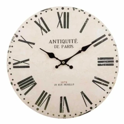 Otro reloj de pared de madera blanca, de 34 centímetros de diámetro y 2 centímetros de altura. Su aspecto elegante y luminoso sigue ofreciendo una estética clásica que combina bien con diversos estilos de decoración.