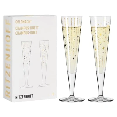 RITZENHOFF 6031008 Copa de champán 200 ml, serie Goldnacht, 2 unidades, con oro auténtico, fabricado en Alemania