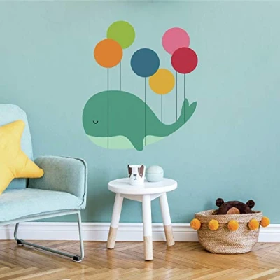RoomMates RMK4120GM Whale Dream Walker Calcomanías de pared para despegar y pegar, rojo, naranja, amarillo, azul, verde
