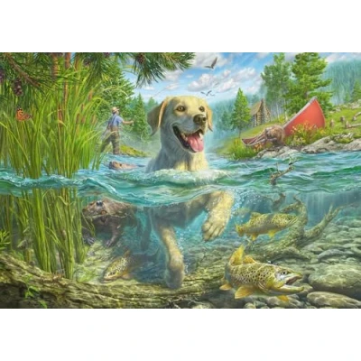 Schmidt Juego 58557 Mark Frederickson, Amor de Perros, Labrador Amarillo en la Caza Peces, 1000 Piezas, Multicolor