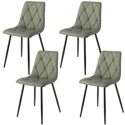 ConforamaSet de 4 sillas de comedor cómodas y de diseño sencillo. Esta sillas acolchadas están tapizadas en ecopiel de alta calidad con acabado en capitoné, en un bonito color verde militar. Sus patas metálicas de estructura tubular están lacadas en color negro mate.Mueble premontado.Uso exclusivo de interior.