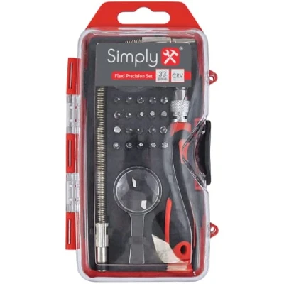 creciente herramienta simplemente gama con una gran variedad de productos de alicates, llaves, destornilladores para llaves dinamométricas, herramienta de conjuntos de herramientas y accesorios. Cromo vanadio destornillador bits, extensible, asa, incluye flexibles, extensión y lupa Mango suave, gama completa de bits, compacto y práctico almacenamiento Contenido del kit: Destornillador extensible soporte extensión flexible y lupa