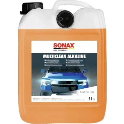 Limpiador altamente alcalino para prelavado de automóviles y camiones Disuelve incluso la suciedad más resistente, como los restos de insectos y los depósitos más duros de polvo de frenos No deja residuos y tiene poca espuma Contenido del envío: 1x SONAX PROFILINE MultiClean Alkaline (5 litros) | N.° 06295000 Protección y cuidado del automóvil; SONAX pasión por los coches - made in Germany