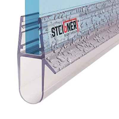 Calidad especializada: fabricada en la UE – sello de ducha de reemplazo 100% impermeable – recto para cabinas de ducha rectangulares y cuadradas - extremadamente duradero, irrompible, resistente al moho y a la cal – para espesores de vidrio de 5 mm a 8 mm – Utilización versátil para cualquier tipo de ducha – protección fiable contra las fugas de agua. ¡STEIGNER fabrica más de 60 modelos diferentes! Nuestra gama también incluye juntas de ducha para vidrios de 3,5 mm, 4 mm, 5 mm, 6 mm, 7 mm y 8 mm de espesor. Sistema innovador: diseño bien pensado con una aleta extendida para obtener aún mejores propiedades de sellado – muy duradero y estable, no se endurece – la junta está compuesta por PVC de diferente dureza. Una excelente combinación de plástico rígido con plástico flexible lo convierte en una junta tan resistente como funcional dando una gran eficacia: perfil de PVC rígido (80 Sh´a D de espesor), alas de PVC blando (70 Sh´a A de espesor) – esto evita que la junta se deslice del vidrio Fácil instalación: la instalación de la junta lleva unos minutos. Simplemente inserte el perfil PVC en el vidrio de la puerta o cabina de la ducha. Consejo: dado que el PVC pierde su flexibilidad bajo la influencia del frío, recomendamos instalarlo a temperatura ambiente o calentarlo suavemente con un secador de pelo antes de la instalación. Ventajas a simple vista: un suelo seco que no necesita ser limpiado después de cada ducha - 100% de seguridad, ya que protege contra el deslizamiento sobre suelo mojado - reduce el crecimiento de moho – cada perfil de sellado se puede cortar individualmente a cualquier longitud – montaje sin adhesivo – apariencia discreta gracias a su color transparente., Fabricante: STEIGNER