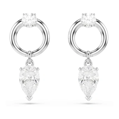 Medidas: 2,2 x 1 cm Deslumbra elegancia: los pendientes Swarovski Mesmera captan la luz desde todos los ángulos y son un complemento ideal para regalar o realzar cualquier look Combinación de luces: el motivo central presenta una Swarovski Zirconia en talla pera unida a un aro bañado en rodio, con otra Zirconia adicional en talla redonda en el centro Conjunto lujoso: estos pendientes realzan cualquier estilo en combinación con el colgante a juego y así lucir un conjunto propio Diseñados para perdurar en el tiempo: las joyas Swarovski lucen por sí solas gracias al brillo y la talla del cristal junto a los metales más resistentes; evita el agua, las lociones o el perfume Contenido del envío: 1x Swarovski Pendientes Mesmera, con Swarovski Zirconia en talla pera y talla redonda, baño de rodio, blancos, incl. embalaje de Swarovski