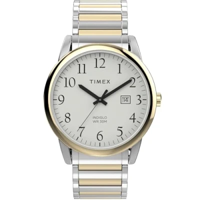 Timex Easy Reader Reloj de 40 mm para hombre, correa expansión acero inoxidable dos tonos, esfera blanca, caja tonos TW2W52100