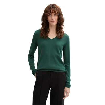 TOM Tailor Basic Vneck Jersey de punto, Mujer, Talla: 38, Explorer green