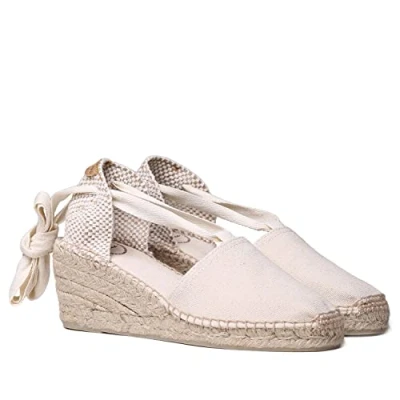 AmazonAlpargata para mujer con cuña media Tacón de 4 cm, altura total de 6 cm Plantilla forrada en tela - mejor ajuste y mayor comodidad Materiales de calidad superior - más duraderos que otras alpargatas Hechas a mano por artesanos en España - sinónimo de calidad