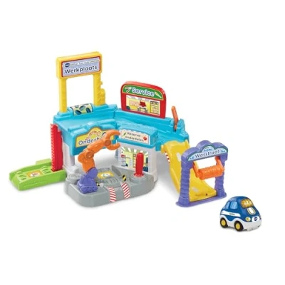 - Presione las teclas parpadeantes para familiarizarse con los colores y escuchar frases alegres, canciones de canciones y melodías - Conduzca el vehículo por el lavado de autos o vaya a la plataforma de reparación para realizar un servicio. - Con 9 sensores mágicos que desencadenan reacciones alegres - Pero combinaciones creativas y conectar el garaje con otros juegos de Toet Toet Coche. - Incluye Teun Takelwagen - Habla holandés - 6 melodías y 3 canciones cantadas - Diseño resistente y duradero - Apagado automático, Fabricante: VTech Electronics